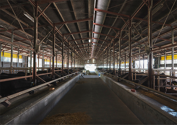 子牛の育成から母牛の再肥育までを担い、成長段階に合わせた飼育を行うことで基礎的な体づくりを支えています。